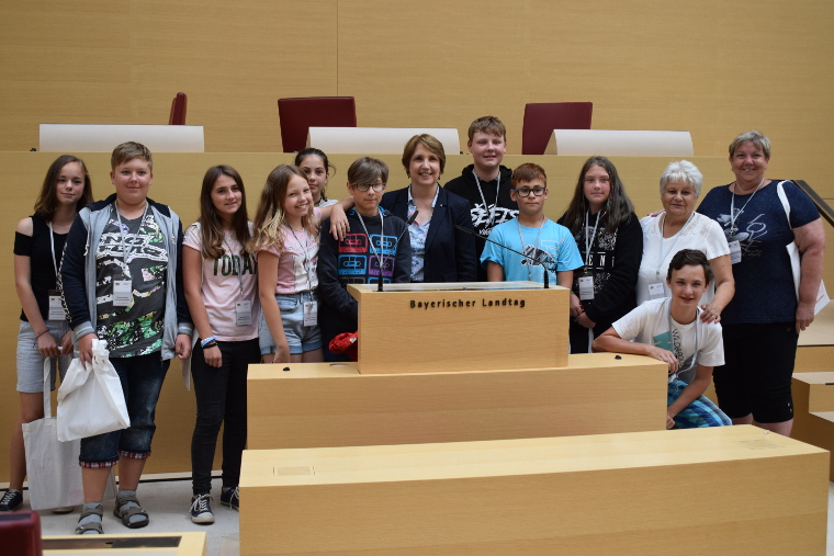 Kurz vor der Sommerpause des Bayerischen Landtags hatte Abgeordnete Annette Karl noch einmal 100 Personen in diesen eingeladen. Unter den Gästen aus der nördlichen Oberpfalz war dieses Mal auch eine 13-köpfige Schülergruppe mit ihren Lehrern aus dem tschechischen Bělá nad Radbuzou. Der langjährige Schulleiter der Moosbacher Schule Josef Rauch begleitet in einem Schüleraustausch die deutsch-tschechischen Kontakte und hatte diesen Besuch im bayerischen Parlament vermittelt.