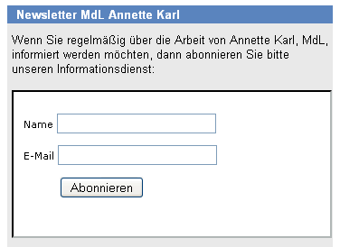 Newslettermodul auf der Homepage annettekarl.de
