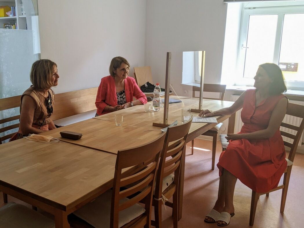 Margit Wild und Annette Karl im Gespräch mit Inge Heindl im Autonomen Frauenhaus Regensburg