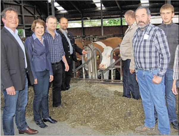 Hans Mois gab zusammen mit Frau Gertraud und Sohn Sebastian den beiden Sozialdemokraten und Vertretern des BDM Einblick in die wirtschaftliche Situation seines Betriebs. Der Milchpreis sei zwar etwas höher als noch vor einem Jahr, allerdings seien die Betriebsmittelpreise von 2010 bis April 2013 um 19,8 Prozent gestiegen. Der Milchmarktindex in Süddeutschland hätte Vollkosten von 51,03 Cent pro Liter ermittelt.