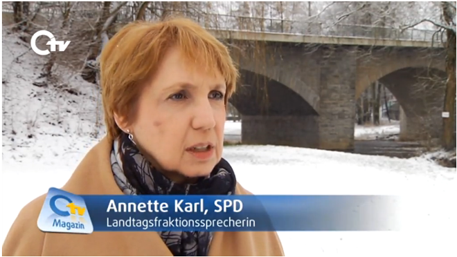 Oberpfalz TV war am 15.01.2016 zu Gast bei Annette Karl, um mit ihr über den Sanierungsstau bei den Brücken an Staatsstraßen zu sprechen.