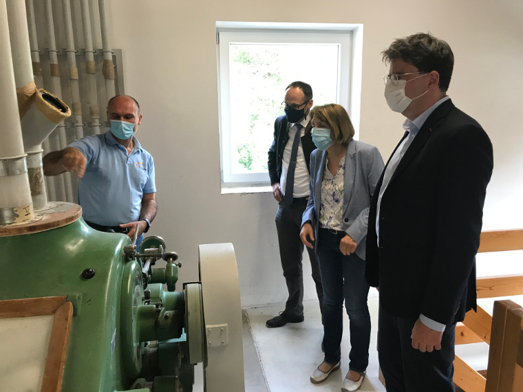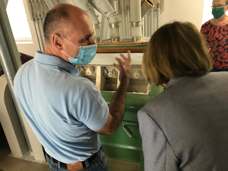 Das Getreide, das in der zu 2/3 mit Strom aus Wasserkraft angetriebenen Mühle gemahlen wird, kommt aus der Oberpfalz und Oberfranken. Erster Bürgermeister Robert Lindner konnte berichten, dass er als Bub noch mit seinem Vater zu der Mühle gefahren sei, um das Getreide abzuliefern. Dr. Josef Rampl vom Bayerischen Müllerbund gab den beiden Abgeordneten Karl und von Brunn zwei wichtige Themen für die parlamentarische Arbeit im Landtag mit: Zum einen soll durch eine EU-Richtlinie die Kennzeichnung von alten Getreidesorten geändert werden, um den Verbraucher auf Unverträglichkeiten hinzuweisen. Zum Beispiel soll aus Dinkel Dinkel-Weizen werden, was vom Verband als nicht notwendig angesehen wird und die Verbraucher verunsichern würde. Der zweite Auftrag befasst sich mit der Wasserkraft, die für die mittelständischen Mühlen enorm wichtig ist, um die Betriebskosten gering zu halten. Dabei sollte beachtet werden, dass die Mühlen schon seit vielen Jahrhunderten die Wasserkraft nutzen und der Rückgang der Fischbestände in den Wasserläufen viele Ursachen hat.