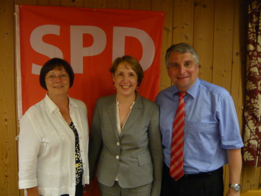 v.l.n.r.: Gabriele Fograscher MdB, Annette Karl MdL, Harald Güller MdLDie neue stellvertretende Landesvorsitzende Annette Karl zu Gast: „Wir kämpfen für die Rettung des Sozialstaats“