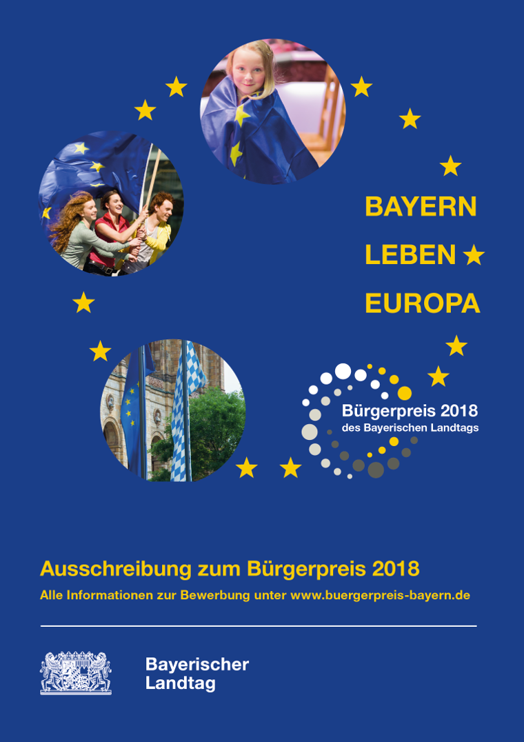 Gerne weist Annette Karl, MdL auf die Ausschreibung für den Bürgerpreis des Bayerischen Landtags für ehrenamtliches Engagement 2018 hin. Das diesjährige Thema ist "Bayern leben Europa." Die Abgeordnete würde sich über zahlreiche Bewerbungen aus der Region freuen.