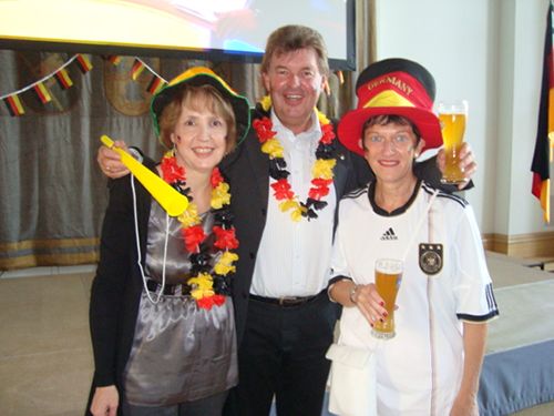 Das Bild stammt vom Public Viewing beim letzten Gruppenspiel der Deutschen Elf nach dem Sieg mit Harald Schneider und Inge Aures.