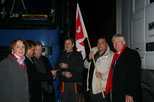 Quelle: www.trucker.de - A.HeiseVom alltäglichen Kampf tausender von Lkw-Fahrerinnen und -Fahrern um einen Parkplatz für ihren Truck und damit auch einen Schlafplatz für sich selbst verschafften sich die SPD-Landtagsabgeordnete Annette Karl, die auch stellvertretende SPD-Landesvorsitzende ist, Bernhard Roos, Reinhold Strobl und der verkehrspolitische Sprecher der SPD-Fraktion, Dr. Paul Wengert, einen ganz persönlichen Eindruck.