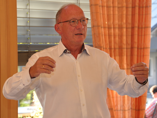 Franz Maget während der Lesung, Bild: Elisabeth DobmayerDas C für „Christlich“ steht bei der Union im Parteinamen. Dass aber mittlerweile auch die Sozialdemokraten und die Kirche zusammengehen, verdeutlichte der ehemalige Landtagsvizepräsident Franz Maget bei einer Buchvorstellung im Gasthaus Sparrer-Wirt. Letzau. (dob) „Kirche und SPD – Von Gegnerschaft zu Gemeinsamkeiten“ ist der Titel des Werkes. Es geht darin unter anderem um die Frage: „Dürfen oder sollen sich Christen in die Politik einmischen?“ Der evangelische Landesbischof Heinrich Bedford-Strohm geht soweit, dass er den Satz prägte: „Wer christlich ist, muss politisch sein.“ Das Buch veröffentlichte der SPD-Mann anlässlich des Katholikentags in Regensburg. Es liefert reichlich Diskussionsstoff. Wer bisher glaubte, Kirche und SPD passen nicht zusammen, wurde an diesem Abend eines Besseren belehrt.