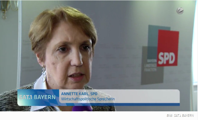 Bericht auf SAT 1 Bayern zur Klausur der SPD-Landtagsfraktion. Annette Karl machte beim Thema Breitbandausbau noch einmal deutlich, dass nur ein flächendeckender Ausbau mit Glasfaserkabel den Freistaat für die Zukunft beim Thema Übertragungsgeschwindigkeit fit macht.