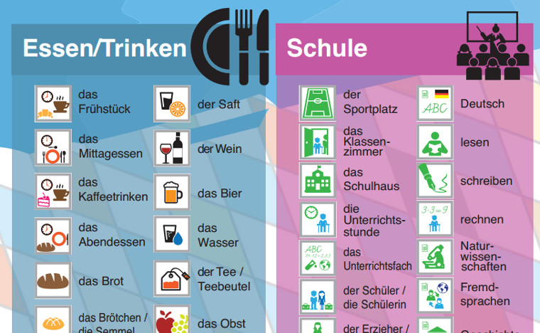 Mit Hilfe von Piktogrammen soll das Erlernen der deutschen Sprache erleichtert werden. "Thematisch sind diese in Bereiche wie Schule, Behörde, Freizeit oder Wohnungseinrichtung gegliedert und bieten einen guten Überblick über praktische Vokabeln für Deutschlerner", wie Neumeyer auf seiner Homepage schreibt.
