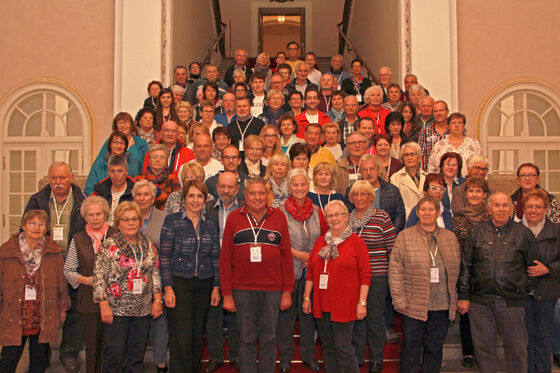 Der Besuch der Landeshauptstadt, welcher mit einer Stadtrundfahrt begonnen hatte, endete für die Gruppe, darunter die AWO Weiden, die Höhe 308 und der Bund der Berliner, mit einem Erinnerungsfoto auf der großen Treppe im Foyer des Maximilianeums.