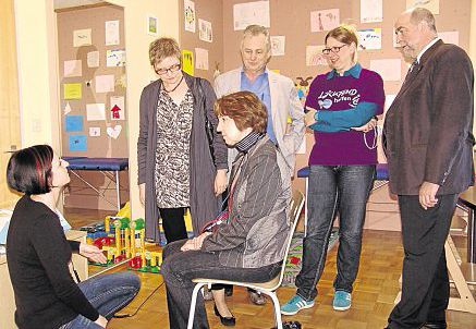 Information vor Ort: Die Landtagsabgeordnete Annette Karl (SPD) besuchte mit ihrer Fraktionskollegin Sabine Dittmar die Praxisgemeinschaft für Ergotherapie (Christiane Reinel-Reiche) und Logopädie (Alexandra Schmidt). Die unterfränkische Abgeordnete Dittmar ist Ärztin und im Landtag Mitglied des Gesundheitsausschusses. Die Landespolitikerinnen begleiteten Bürgermeister Peter Merkl sowie SPD-Ortsvorsitzender Alfred Schuster.