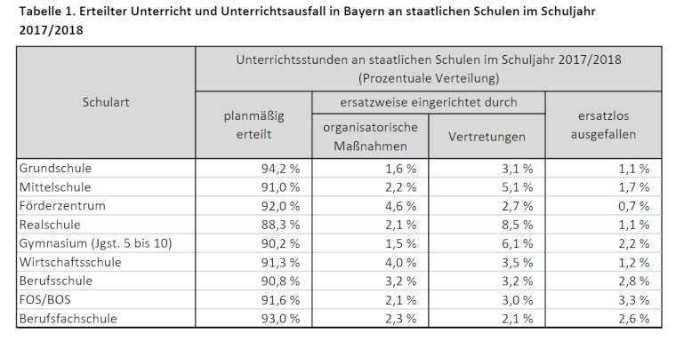 In der Beantwortung zu der Anfrage vom 06.06.2018 „Unterrichtsausfall an Bayerns Schulen“