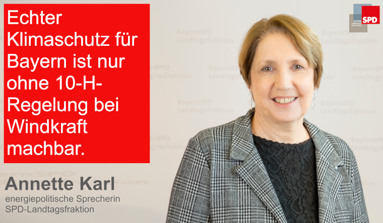 Für die Energieexpertin der Fraktion Annette Karl ist klar: "Echter Klimaschutz für Bayern ist nur möglich, wenn die 10H-Regelung wegfällt. Alle seriösen Klima- und Energie-Experten sind sich einig, dass Bayern als Flächenland die Windkraft nicht weiter blockieren darf. Nur mit Photovoltaik werden die Energiewende und damit die Klimaneutralität nicht funktionieren. Dass hier weiterhin eine Form der erneuerbaren Energien ausgespart wird, führt nur dazu, dass Bayern irgendwann Strom importieren muss - der dann vermutlich auch nicht aus erneuerbaren Quellen stammt. Dem Klima und auch der bayerischen Wirtschaft ist damit nicht geholfen."