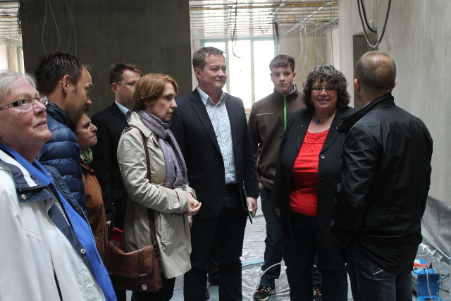 Die Besuchergruppe, zu der auch SPD Kreisvorsitzender Rainer Fischer und Kreisrätin Hannelore Bienlein-Holl gehörten, war von der Raumaufteilung und dem Konzept beim Bau beeindruckt. Äußerst positiv sei, dass der Bau zum allergrößten Teil von regionalen Betrieben durchgeführt wird. Grötsch und Karl kündigten an, nach der Fertigstellung die Schule gerne wieder zu besuchen, um dann auch den Innenausbau und die Außenanlagen kennen zu lernen.